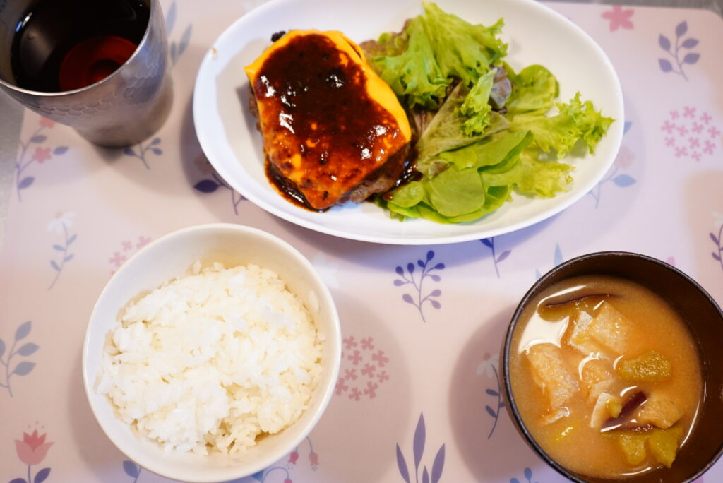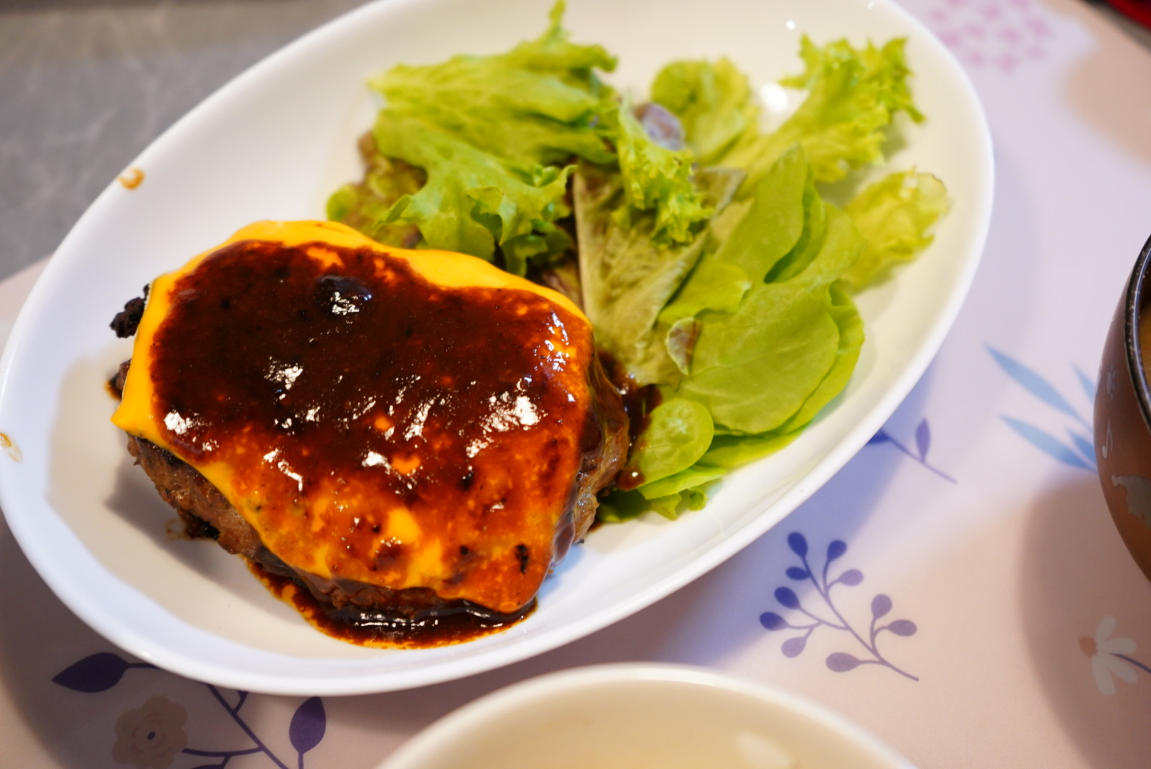 ハンバーグに乗っているチーズはチェダーチーズです。