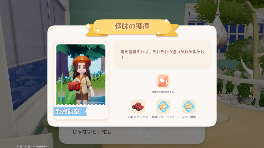 野鳥観察をGETしました。