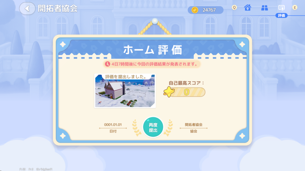 開拓者依頼を進めていったら、ようやくホーム評価の申請ができるようになりました。