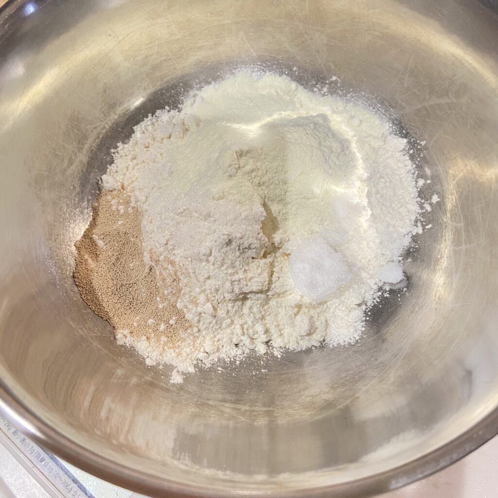 まず粉類をすべていれます。そんでもって混ぜておく。