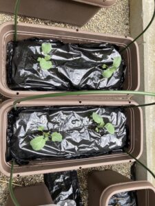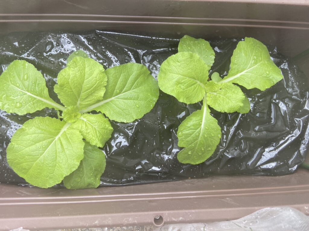 ミニ白菜も順調に育っています。ちゃんと防虫ネットをしているので、そこまで葉っぱが食べられるという被害もないです。