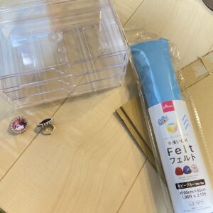 100均で買った透明引き出しと、青色のフェルト。青色は娘のご要望でした。