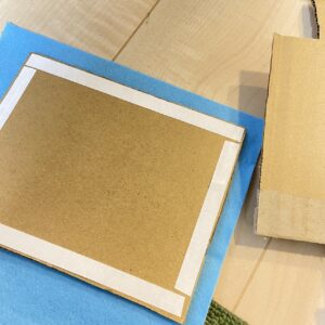 引き出しのサイズより少し小さめに切った段ボールに両面テープを張り、